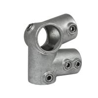 Buiskoppeling Dakrandkniestuk 27,5°-E / 48,3 mm, type 85 is een buiskoppeling die gebruikt wordt voor het bouwen van dakconstructies. Meestal wordt deze koppeling gebruikt in combinatie met het Dakrandtopstuk 27,5°. Ideaal voor een carport, een schuurtje of bijvoorbeeld een partytent. De hoeken van het dakrandkniestuk en het dakrandtopstuk sluiten op elkaar aan, waardoor de combinatie van beide buiskoppelingen zorgt voor een perfecte aansluiting van de steigerbuizen.