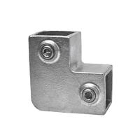 Buiskoppeling Kniestuk 90˚ - vierkant - 40 mm, type 6 is een vierkante 2-weg elleboogkoppeling waarmee een hoek van 90˚ kan worden gecreëerd tussen 2 steigerbuizen. Dit type vierkante buisklem wordt vaak gebruikt als eindstop van een bovenreling en is onmisbaar voor uiteenlopende constructies, waaronder steigerbuis meubels en diverse frames.