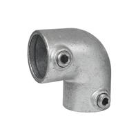 Buiskoppeling Kniestuk 90˚-B / 26,9 mm, type 6 is een 2-weg elleboogkoppeling waarmee een hoek van 90˚ kan worden gecreëerd tussen 2 steigerbuizen. Dit type buisklem wordt vaak gebruikt als eindstop van een bovenreling en is onmisbaar voor uiteenlopende constructies, waaronder steigerbuis meubels en diverse frames.