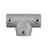De Buiskoppeling Lang T-stuk - variabele hoek 0°-11°-D / 42,4 mm, type 4S is geschikt voor het realiseren van een loodrechte aansluiting tussen steigerbuizen. De hoek kan 0° - 11° aangepast worden, wat deze buiskoppeling zeer geschikt maakt voor projecten waar precisie en aanpassingsvermogen centraal staan. Eén buis loopt geheel door de T-koppeling terwijl de andere hier haaks tegenaan loopt. Doordat het doorlopende gedeelte van deze buiskoppeling voorzien is van 2 stelschroeven is het Lange T-stuk geschikt om 2 horizontale steigerbuizen in elkaars verlengde met elkaar te verbinden.