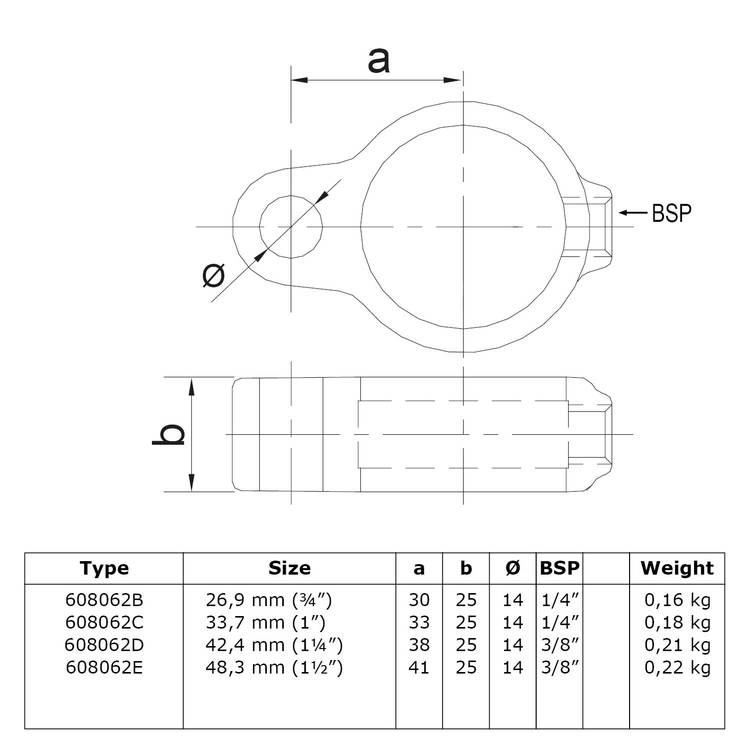 Buiskoppeling Scharnieroog-E / 48,3 mm, type 62 wordt gebruikt voor scharniertoepassingen. Hierbij wordt het Scharnieroog gecombineerd met een Scharnierpen. Deze combinatie vormt een scharnierend geheel dat uitermate geschikt is voor het integreren van poortjes of deuren in een steigerbuis constructie.